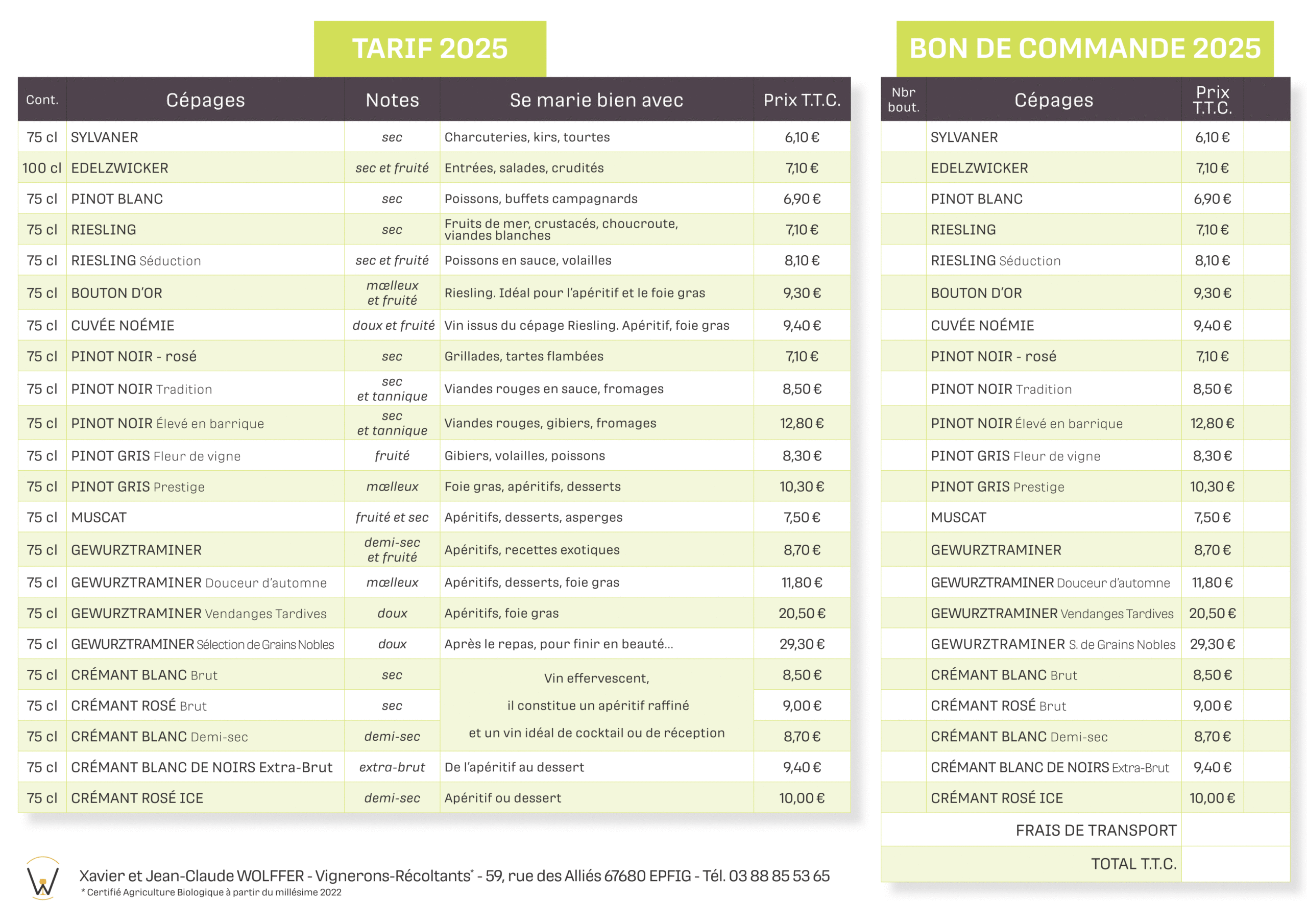 | Sylvaner 75cl | Charcuteries, Kirs, Tourtes | 6,10€ |  |